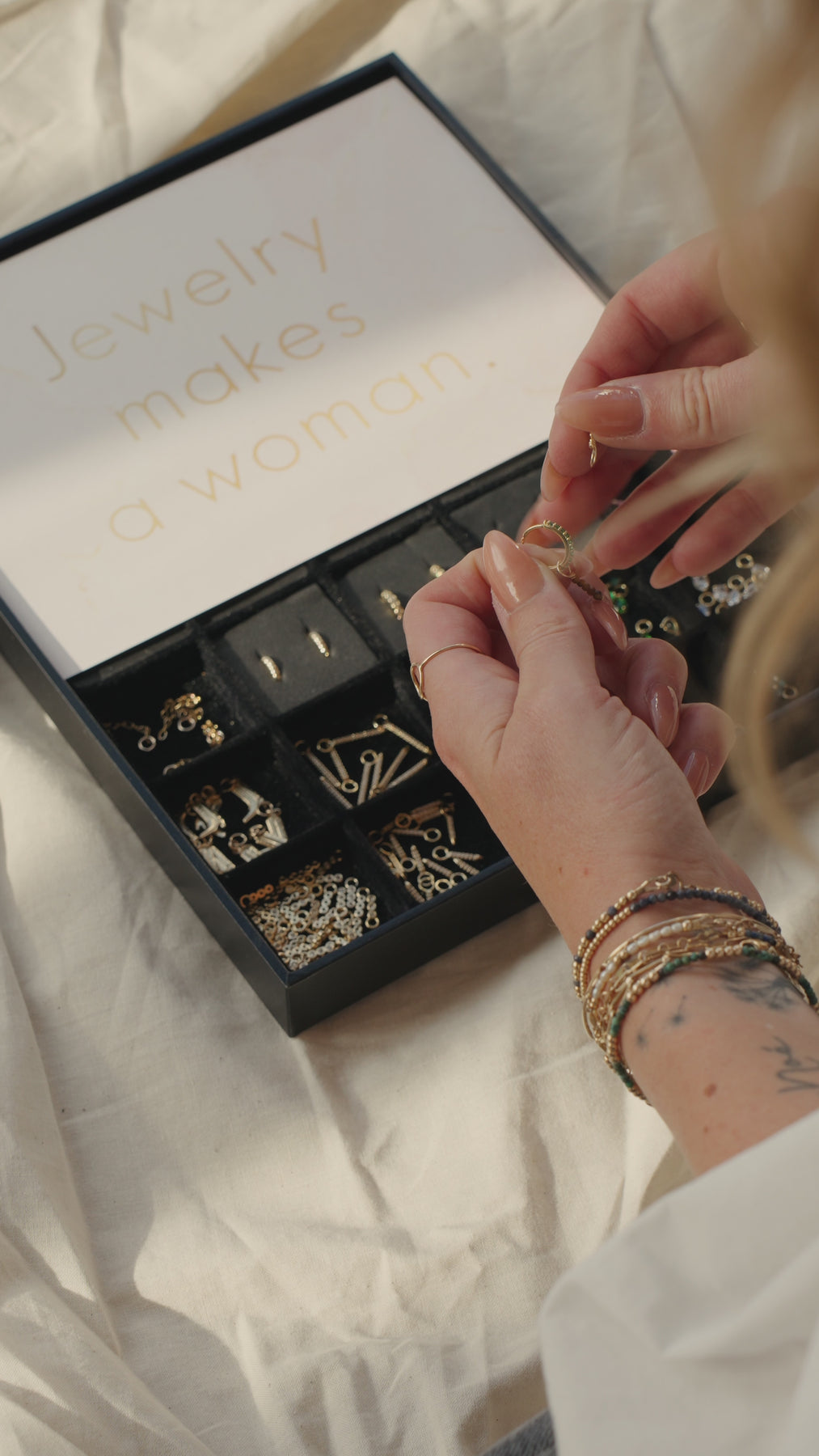 Slapen met sieraden brengt risico's met zich mee, kettingen draaien in elkaar, bedels kunnen verbuigen, oorbellen kunnen uit gaan enz.
